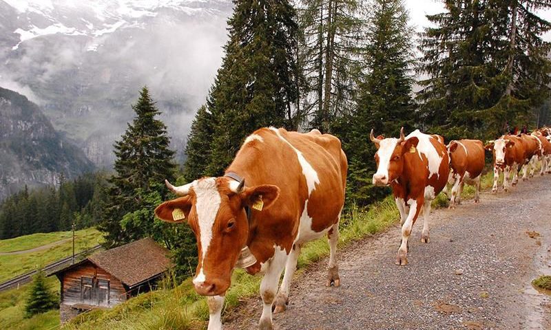 Zwitserland heeft 50.000 agrarische bedrijven, waarvan 70% minder dan 20 ha bewerkt. Veel Zwitsers werken parttime op hun bedrijf en bieden daarnaast kamerverhuur en/of verkoop van producten van het bedrijf. Moderne veeteeltbedrijven bevinden zich veelal in de dalen.